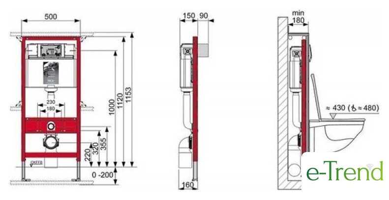 | Отверстия под инсталляцию | 180 мм, 210 мм, 230 мм |